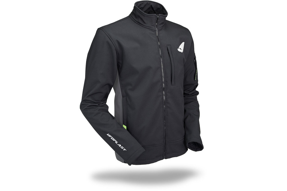 Xhaketë argëtimi me mbyllje me zinxhir përpara në gjatësi të plotë dhe logo të shtypura Ufo Plast, teknologji dhe stil për daljet tuaja sportive në liri.